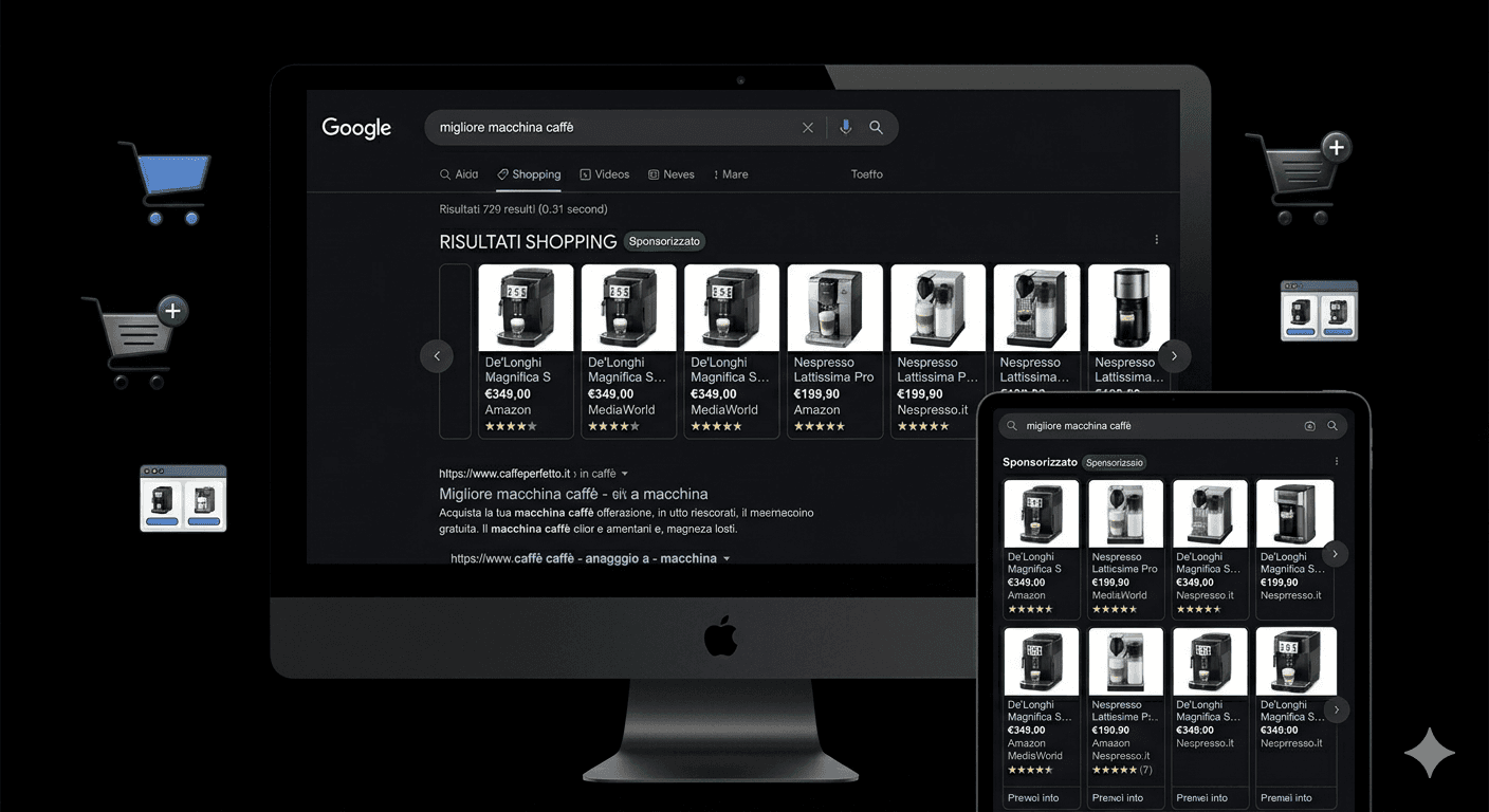 Con Google Shopping i miei prodotti sono in prima vetrina. Vedere foto e prezzo subito ha abbattuto il costo per acquisizione del 30% rispetto ai soli annunci di testo.